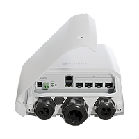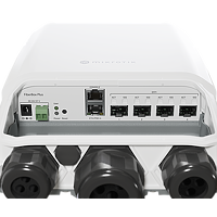 This rugged outdoor switch is perfect for connecting mast devices. Like the mANTBox 52 or the LHG XL 52. Imagine a huge campsite with several guest houses, a food court, and the owner’s cabin. You can connect all the locations with the FiberBox Plus. One of the fiber connections can be used for the mANTBox base station – to provide general connectivity for the guests. Another connection could go to the owner’s house. And the third could be used in the food court – to connect their payment and inventory servers.